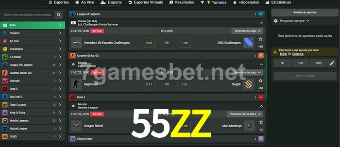 A aposta 55ZZ oferece aos jogadores a experiência mais conveniente de apostas em eSports!